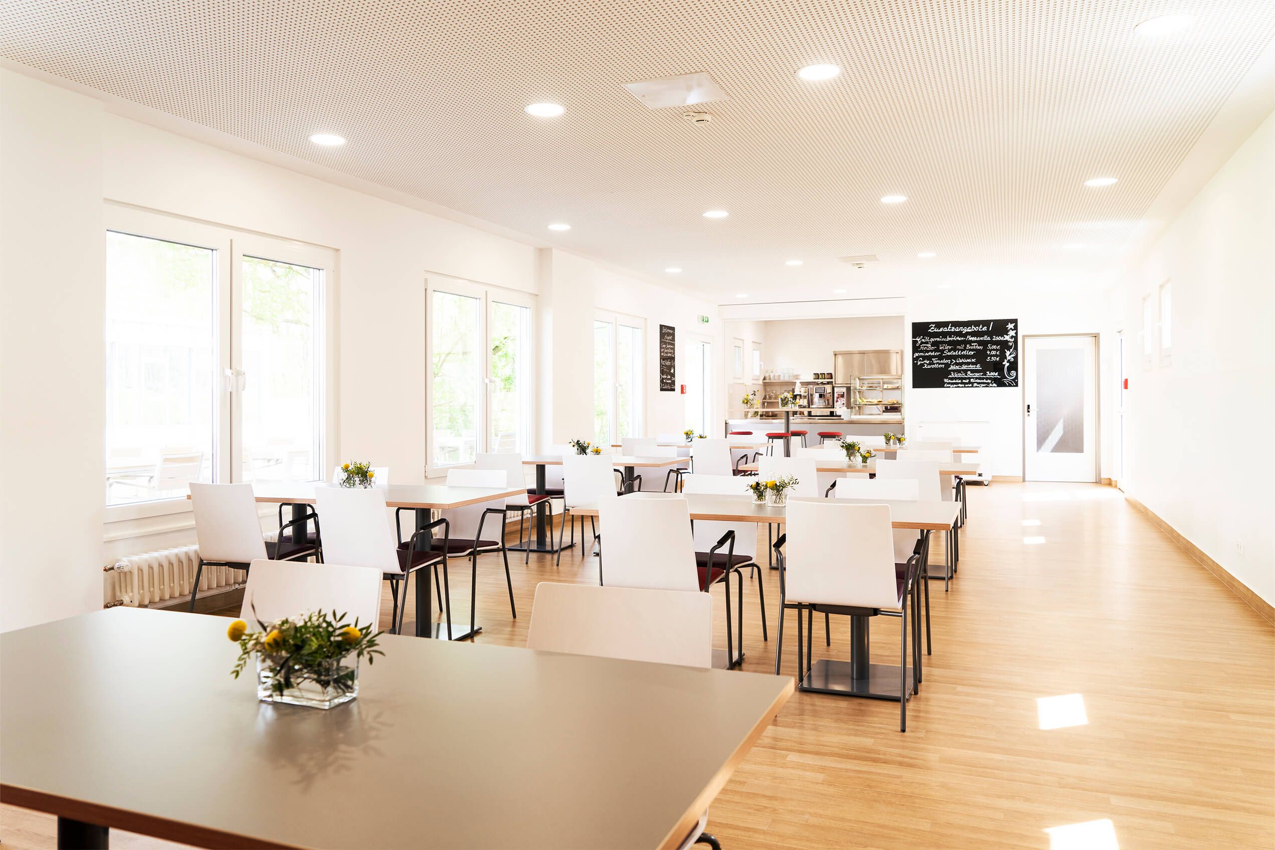 - Cafeteria mit Sonnenterasse. Kostenlose Kaffeespezialitäten für alle Mitarbeiter.